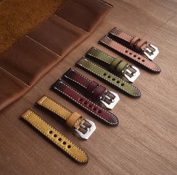 สายหนังสไตล์วินเทจคุณภาพสูงสายนาฬิกาหนัง Horween 20/22/24มม. สายหนังสำหรับสมาร์ทวอทช์